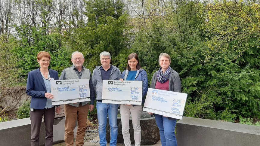 Der Glonner Dorffestverein spendet aus dem Erlös vom letzten Dorffest 2022 jeweils 500,00 € an den Kath.Pfarrkindergarten, den KiJuFa-Kindergarten und an die Hospizinsel Glonn.